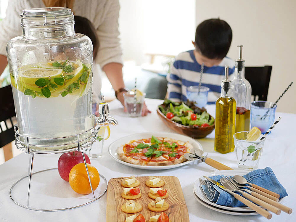 飲み物をドリンクサーバーで用意すると、ホームパーティーも盛り上がりますね。ゲストも好きなだけ気軽に飲めて、おしゃべりも弾みそうです。