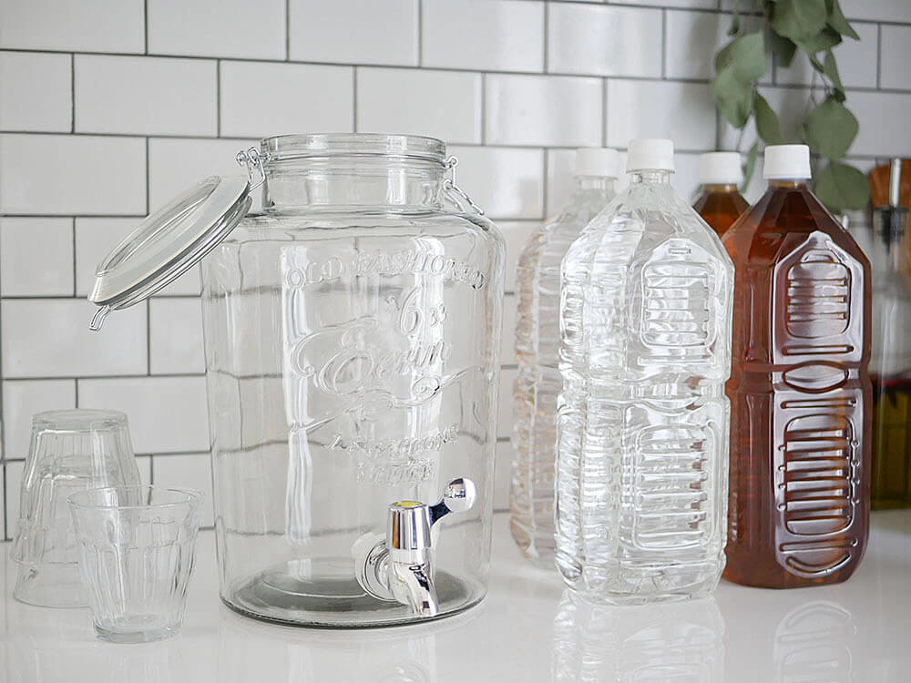 毎日飲むお水やお茶をペットボトルでストックしてるというご家庭は意外と多いはず。毎回ペットボトルでグラスに注ぐのは面倒なこともありますよね?