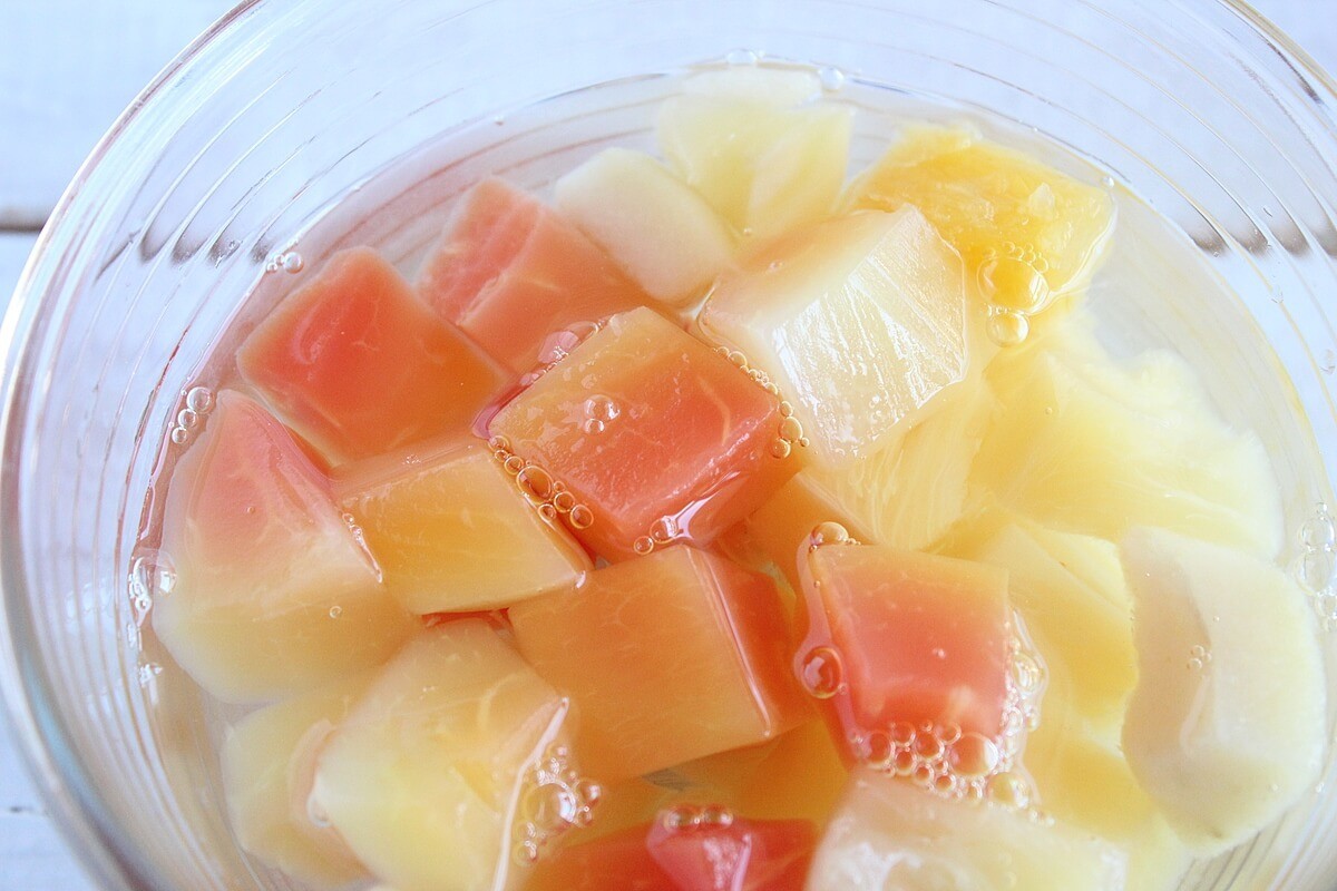 二つを良く冷やしておき、サイダーと混ぜれば簡単にフルーツポンチができますね。