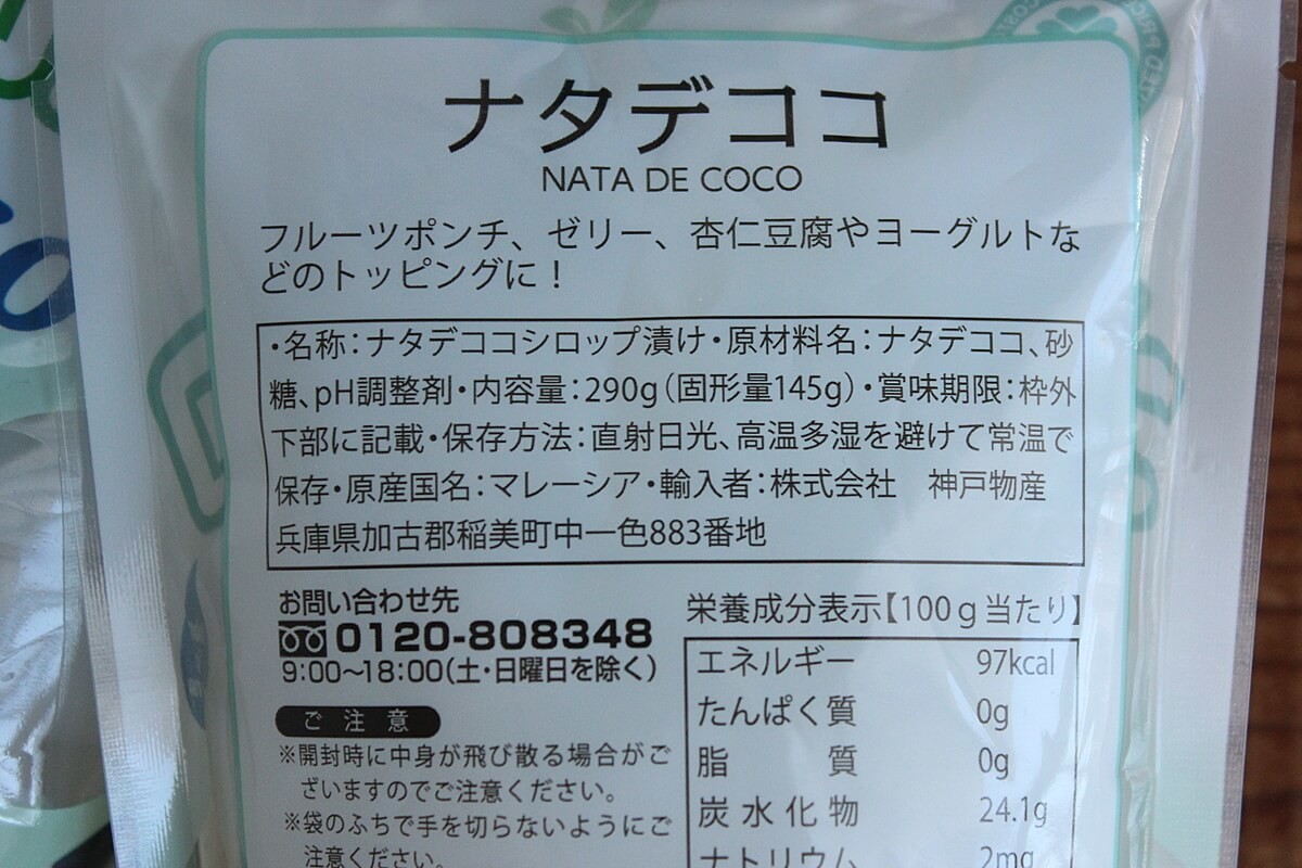 業務スーパーで購入することができるナタデココは、総グラム数が290gあり、固形量は半分の145gで税込104円という激安価格!
