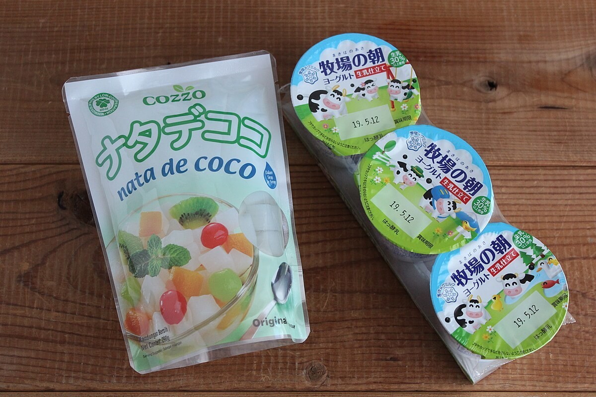 食べきりタイプのヨーグルトと、ナタデココの半量を使うと 、