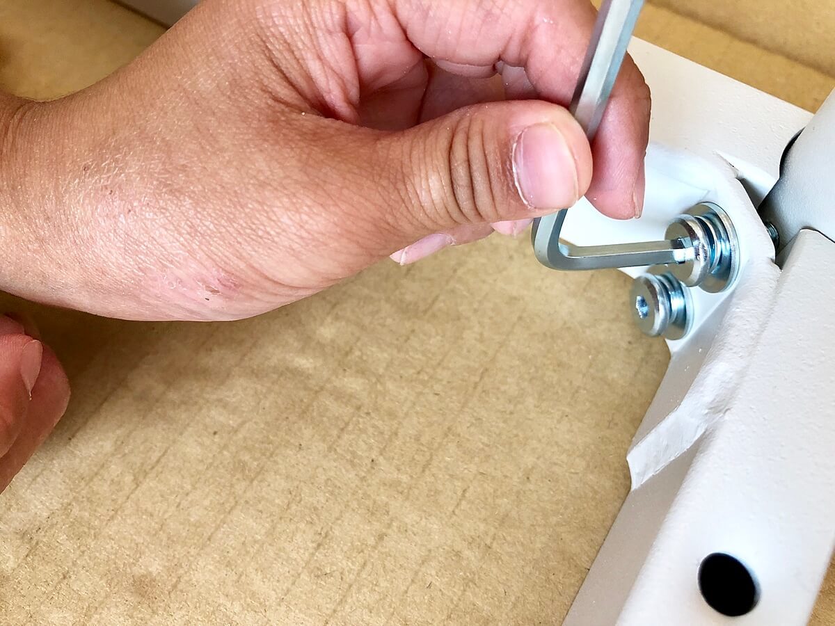 手で可能な限りボルトをまわし、あとは六角レンチで合計8本のボルトを締め付けます。