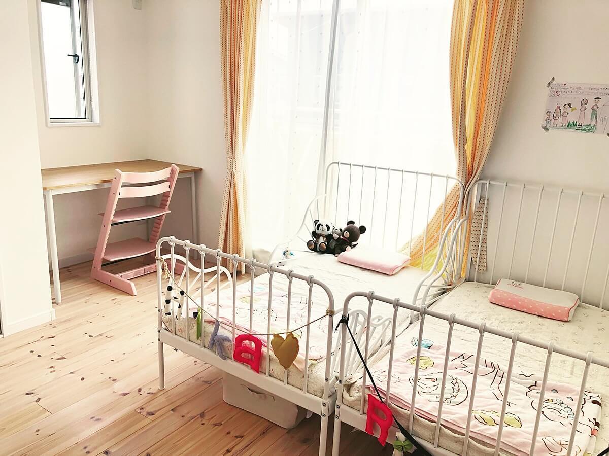 子ども部屋ベッドが白いフレームのパイプベッドということもあり、部屋の雰囲気にマッチしてとても気に入っています。