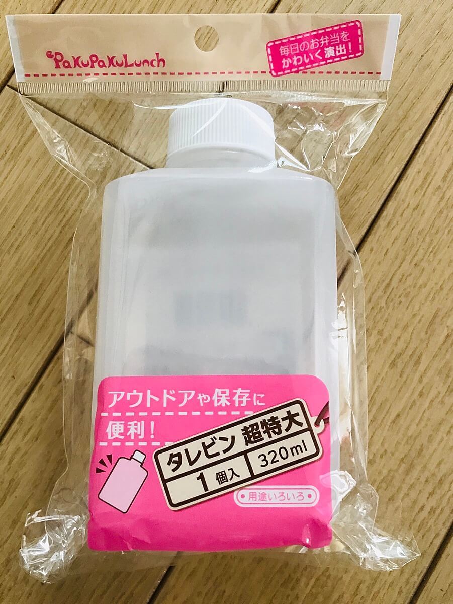 こちらは、セリアで販売している、キャップが白い超特大サイズ320mlのタレビン。