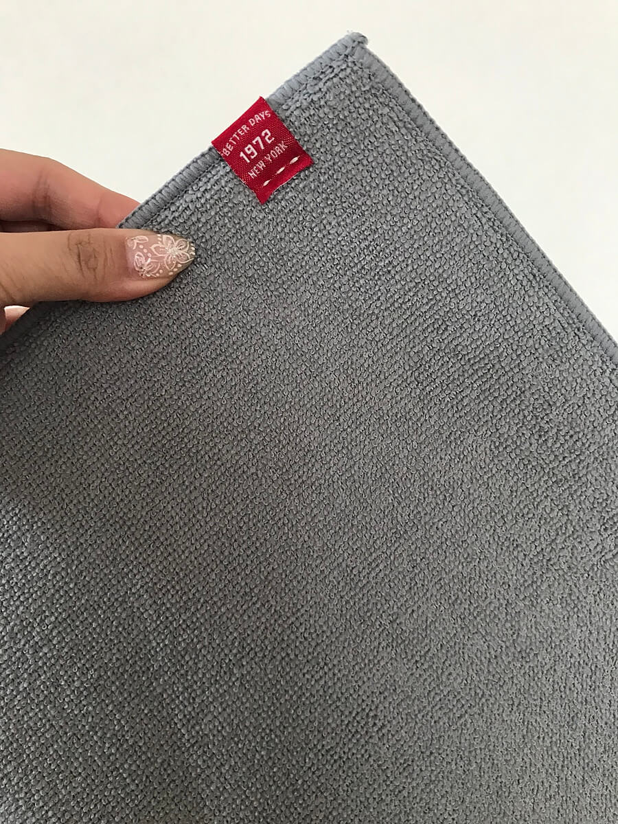 シンプルなのは良いのですが少し物足りず、わたしなりにワンポイントが欲しくて、タグを縫い付けちゃいました!