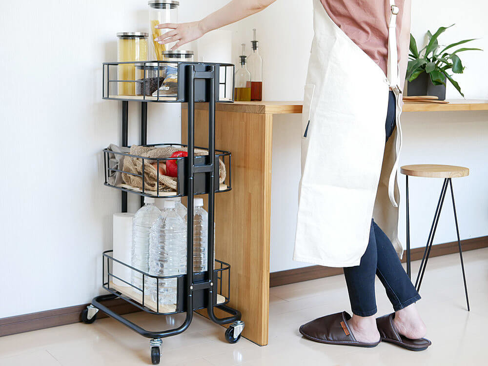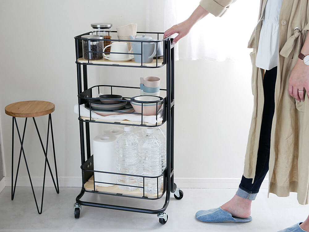 キッチンやリビングなどでちょっとした収納場所が欲しいときに重宝するのがキャスター付きのワゴン。すぐに物を取り出せて、片付けやすいのでお部屋の整理整頓にも使えますよね。
