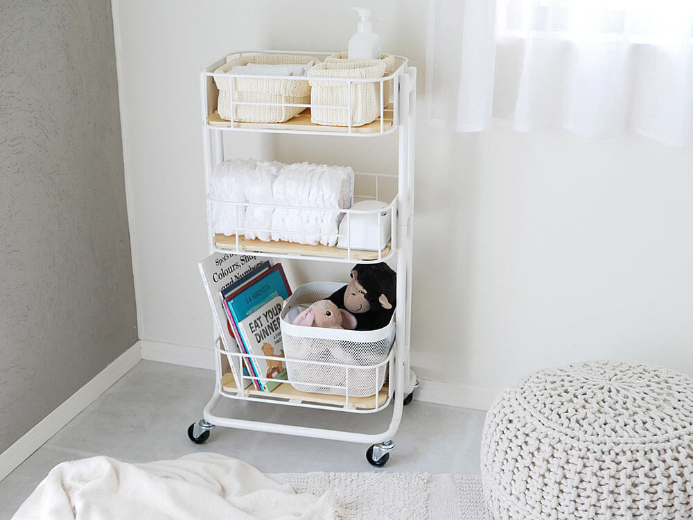 キャスター付ワゴンはキッチン収納だけじゃない!ベビー用品も一括収納できる優秀設計だった