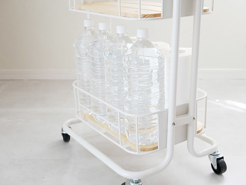 重たいペットボトルなどを入れてもキャスター付きなので簡単に移動できるのが◎。お掃除する時もスムーズです♪