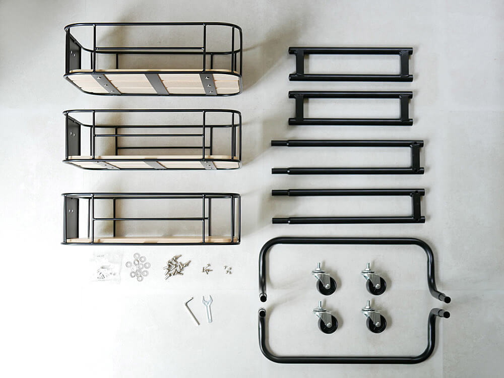 ここでは、パインウッドとアイアンの組み合わせがスタイリッシュなバイシクルケースワゴンをご紹介します。