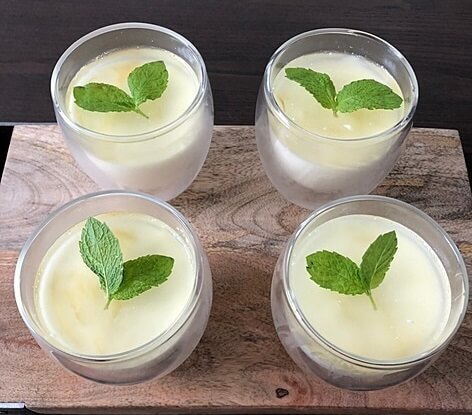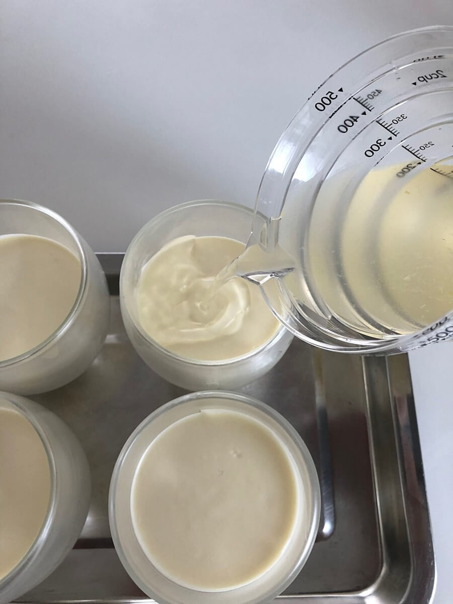 型やグラスに流し入れ冷蔵庫で冷やす。