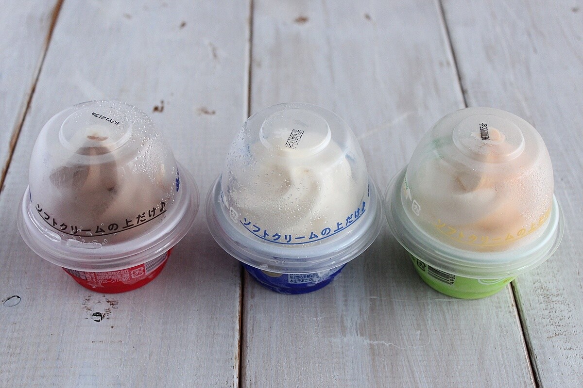 容器を見てすぐに浮かんだのが写真のアイス。こちらはソフトクリームの上だけタイプですのでまさにピッタリ!