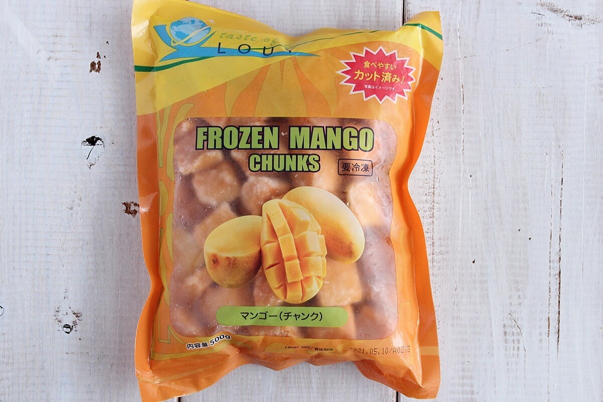 一口大にカット済みの冷凍マンゴーなので、冷凍庫から出してのせるだけ!楽すぎます♪
