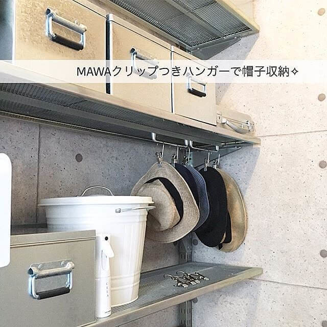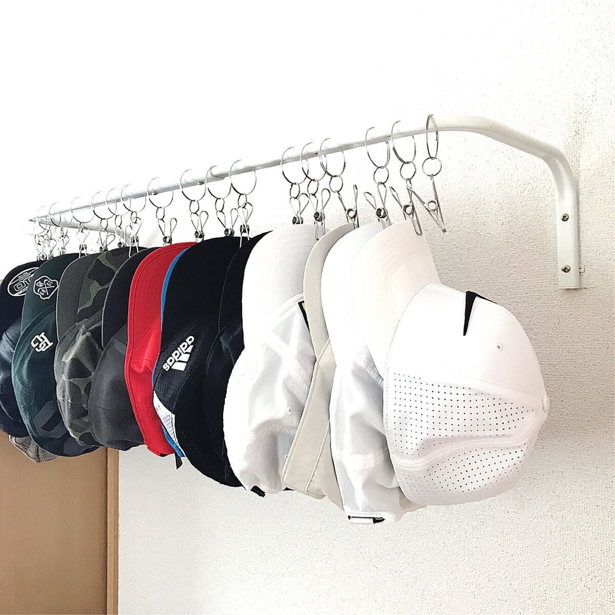 S字フックやクリップを使うことで、帽子を吊るして収納できるため省スペースでたくさん収納できます。