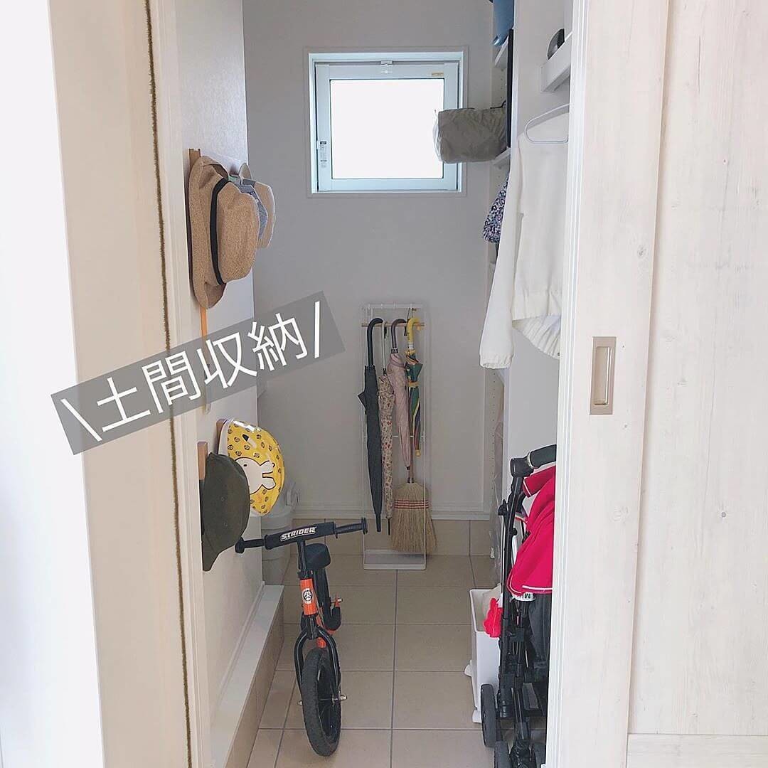 @megumigumitanさんは、サークルハンガーを使って土間のデッドスペースに帽子を掛けました。