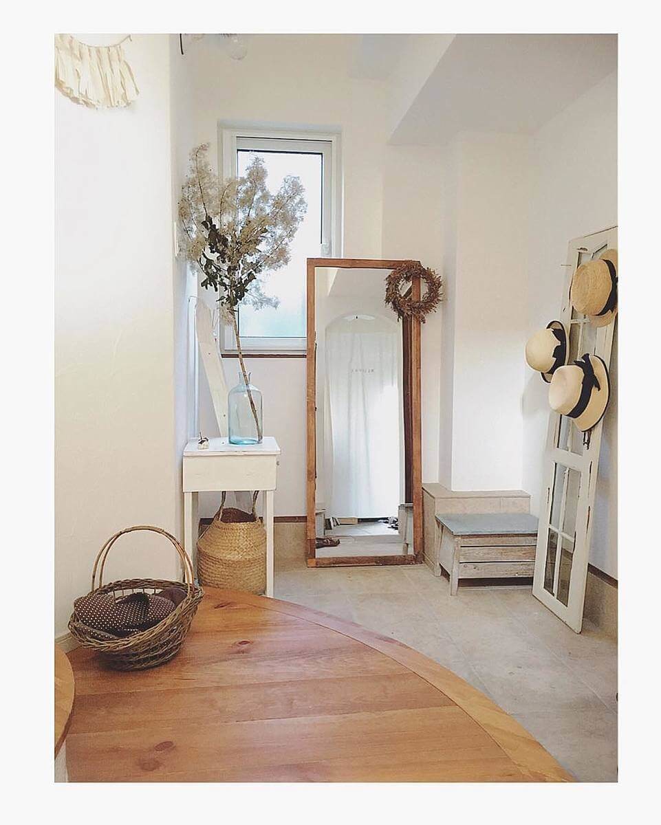 @tomotomo.1026さんが帽子収納に使っているのは、おしゃれにリメイクした扉。リメイク扉にネジを打ち付け、そこに帽子を引っ掛けて見せる収納を楽しまれています。