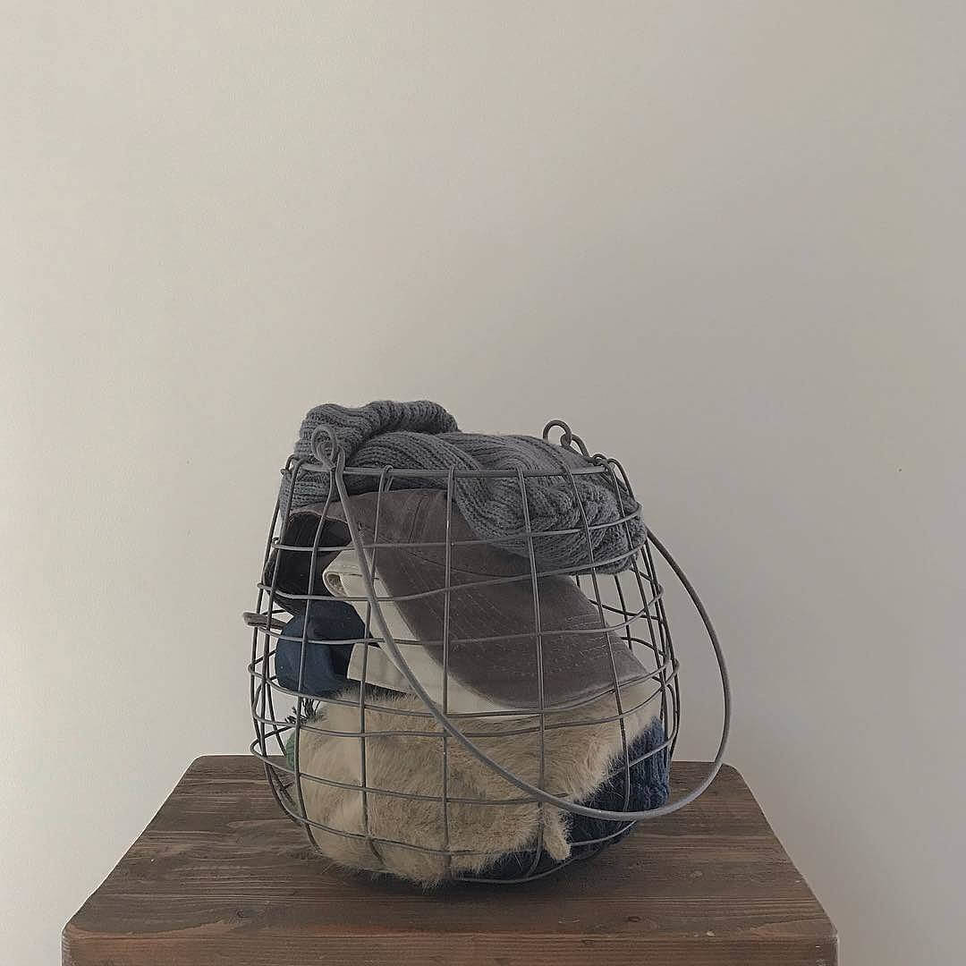 型崩れの心配がない帽子であれば、おしゃれなカゴにまとめて収納しておくのも◎。@north_pole_2さんが愛用しているような、デザイン性の高いカゴなら無造作に入れても絵になります。