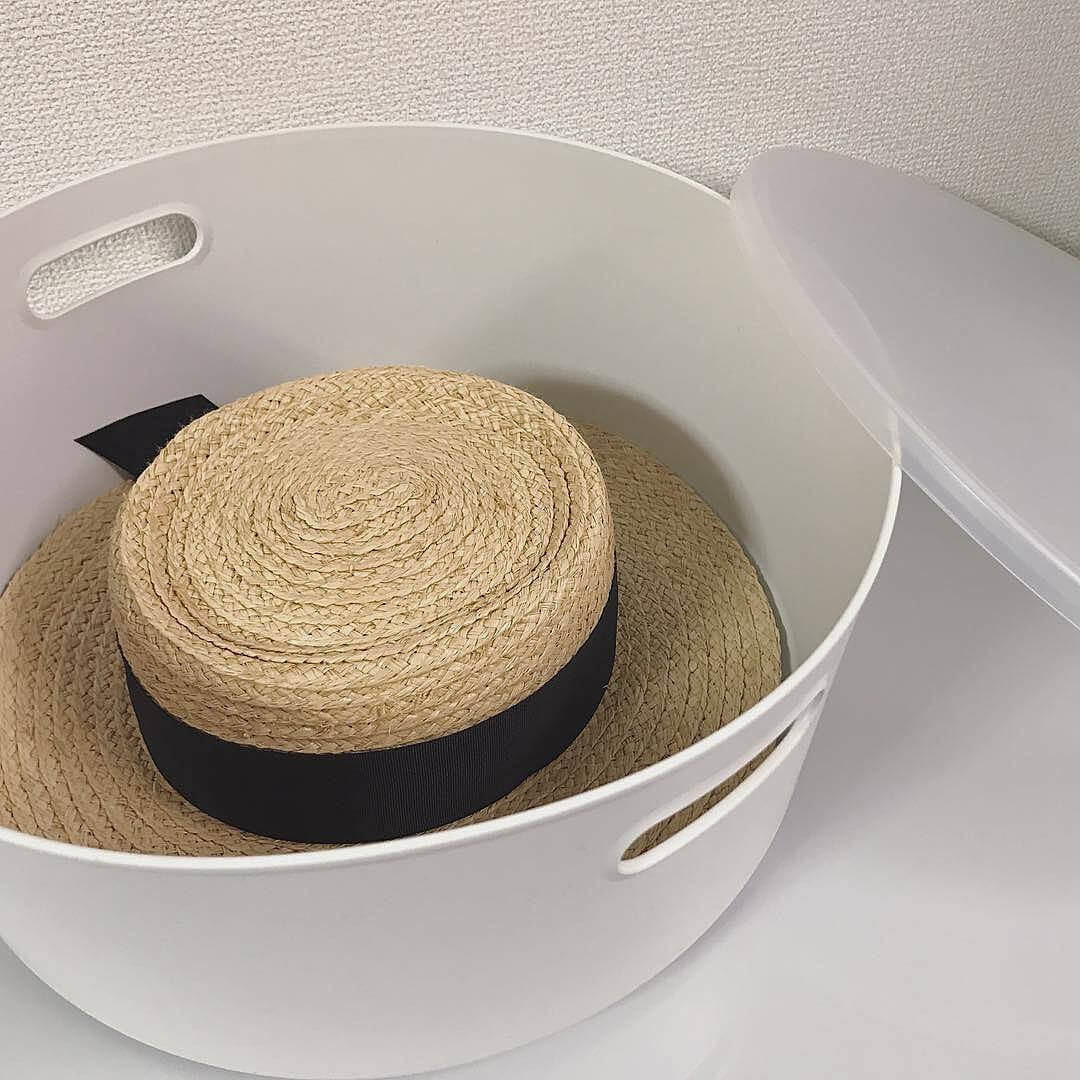 @______joieさんが帽子の収納に活用しているのは、無印の「やわらかポリエチレンケース丸型」。帽子専用の収納ケースではないのですが、「まさかのシンデレラフィット!」とSNSでも話題の商品なんだとか。