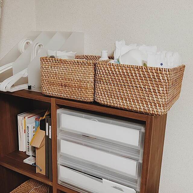 @saaya910さんが使っているのは、IKEAのリーサトルプというおしゃれなバスケット。木製の持ち手がデザインのアクセントになっており、収納をしながらインテリアとしても楽しめそうです。