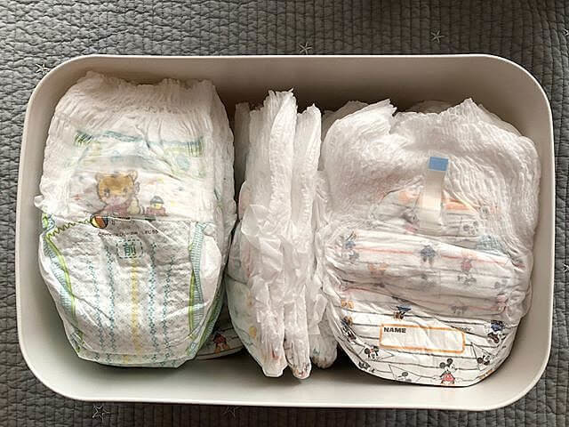 おむつパッケージのまま収納ケースにイン
