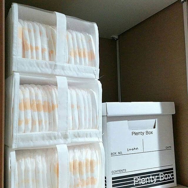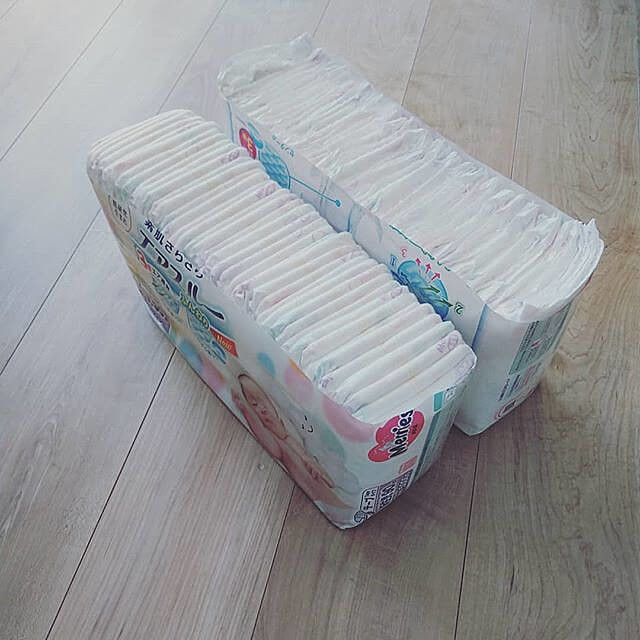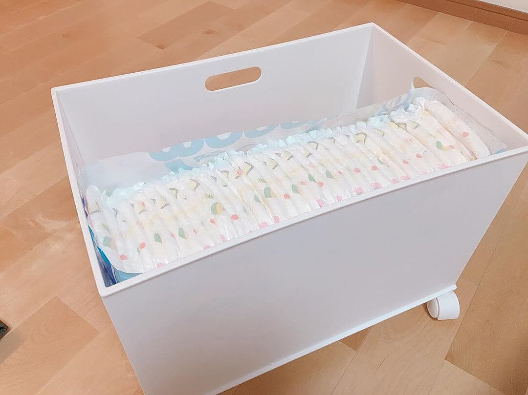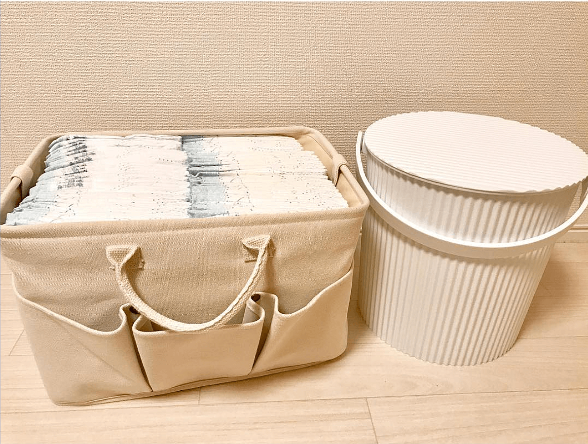 おむつは赤ちゃんが生まれてから3歳頃まで長く使うもの。長きに渡って付き合うものなので、おむつをパッケージのまま置いておくよりも、何かしらケースに入れておくと、見た目にも素敵ですよ。