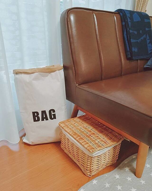 @mryhomeさんはかごへの移し替えや、補充する手間を省くために大きな100均のペーパーバッグを活用。デザインがとってもおしゃれなので、生活感を隠しながらお部屋のインテリアアイテムとしても楽しめそうですね。