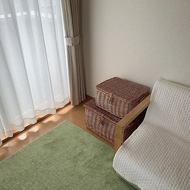 @rmos___12さんは、ラタンバスケットにおむつやスキンケアなどの育児グッズをまとめて収納。インテリアになじむデザインなので、お部屋の雰囲気を損ねることなく溶け込んでいますね。