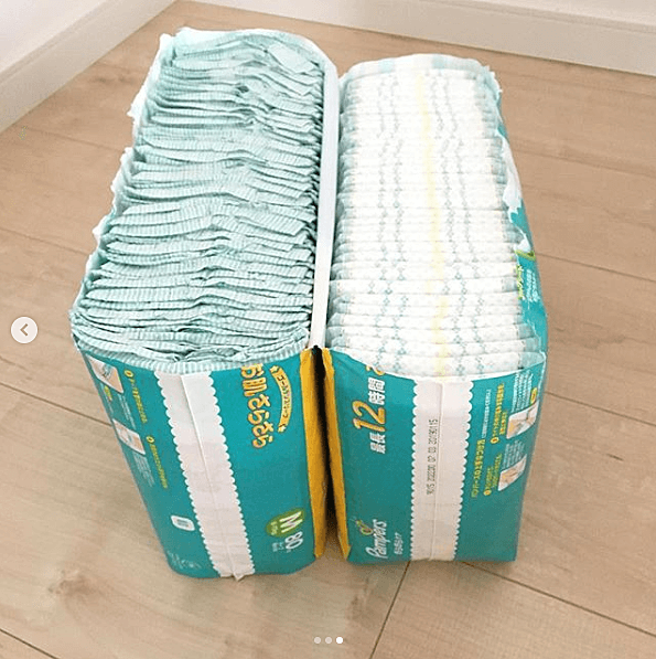 先ほどおむつを収納しない方法をご紹介しましたが、やはりパッケージのまま置いておくのは少し抵抗がある方もいますよね。そんな方は@kaako_lifeさんのアイデアを取り入れてみてはいかがでしょうか。