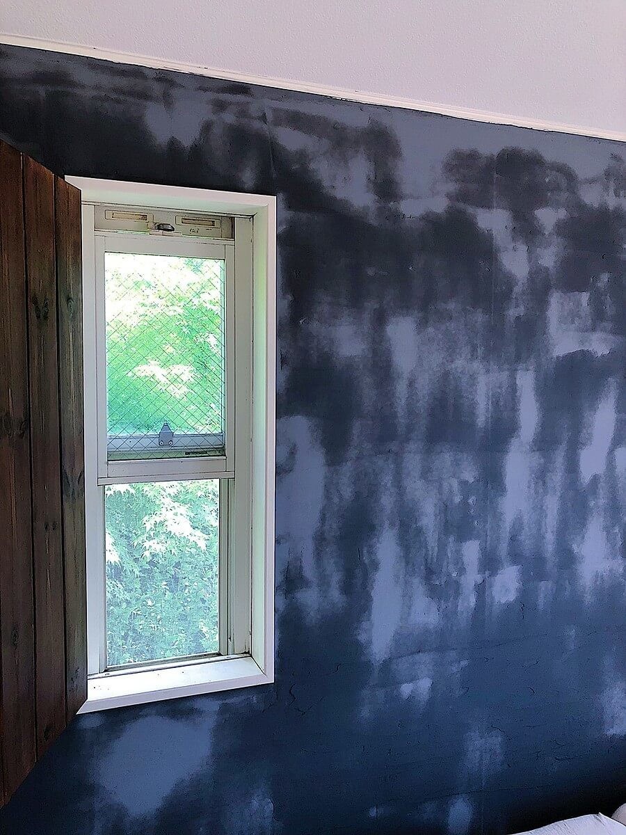今回、寝室に塗った漆喰はグレー。