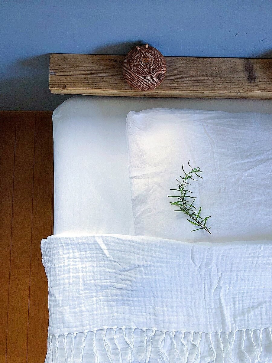 大きな面積を占めるリネン類を白にすると爽やかな雰囲気になります。 リネンはベタつく不快感を軽減してくれるので気持ち良く眠りにつけます。