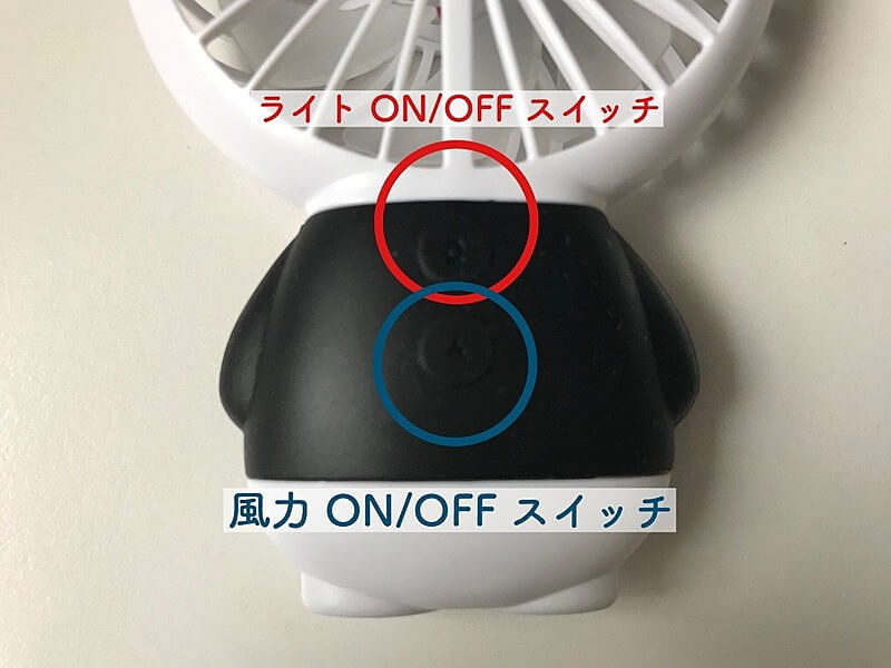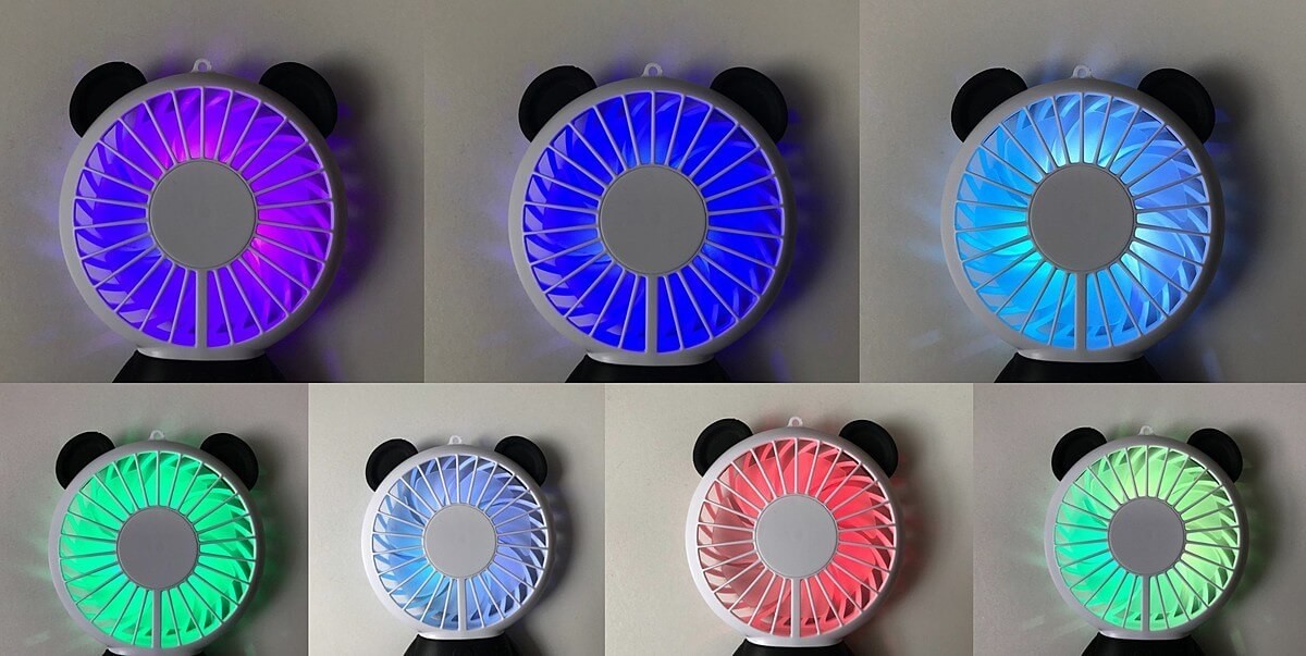 それに音も比較的静かなのもいいです。風力ボタンの上はライトボタンで7色グラデーションと白色単色の2種類に切り替えることができます。