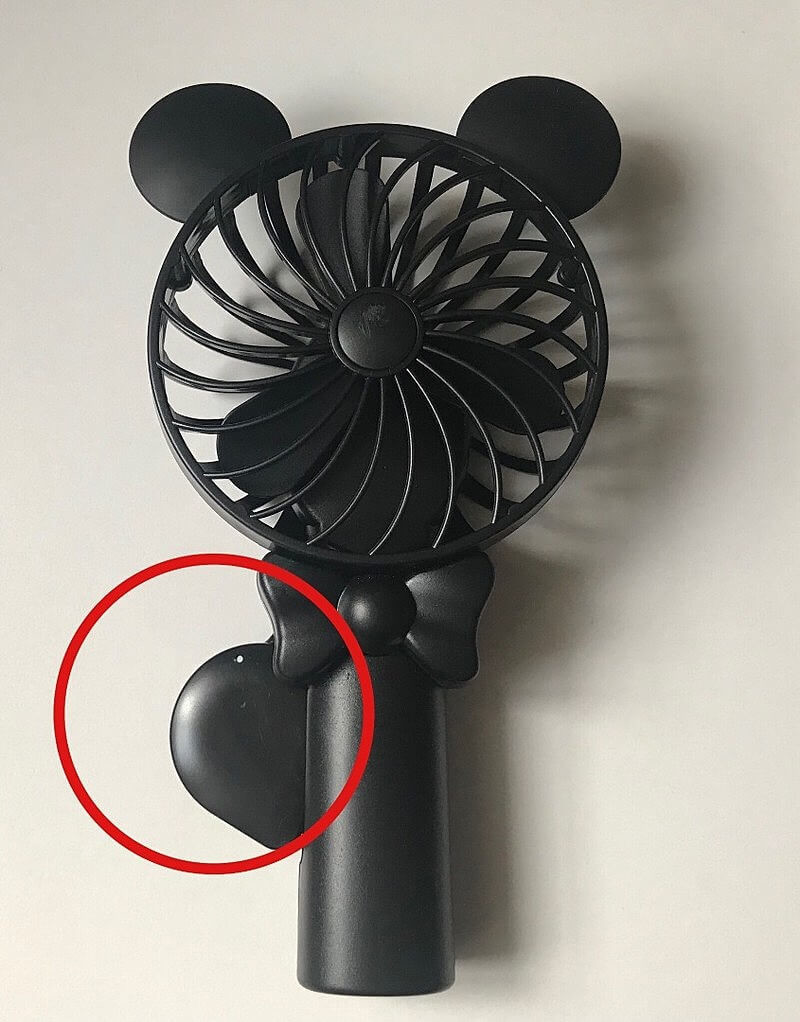 手で握ってレバーを押すと、羽が回って扇風するんですよ!