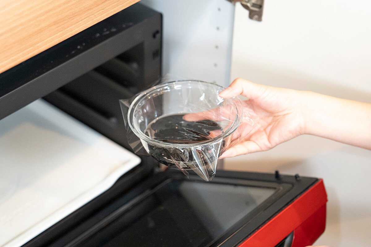 ・ラップを外すときは、少しずつゆっくり外してください。一気に外すと蒸気によりやけどする恐れがありますので、十分に注意してください。