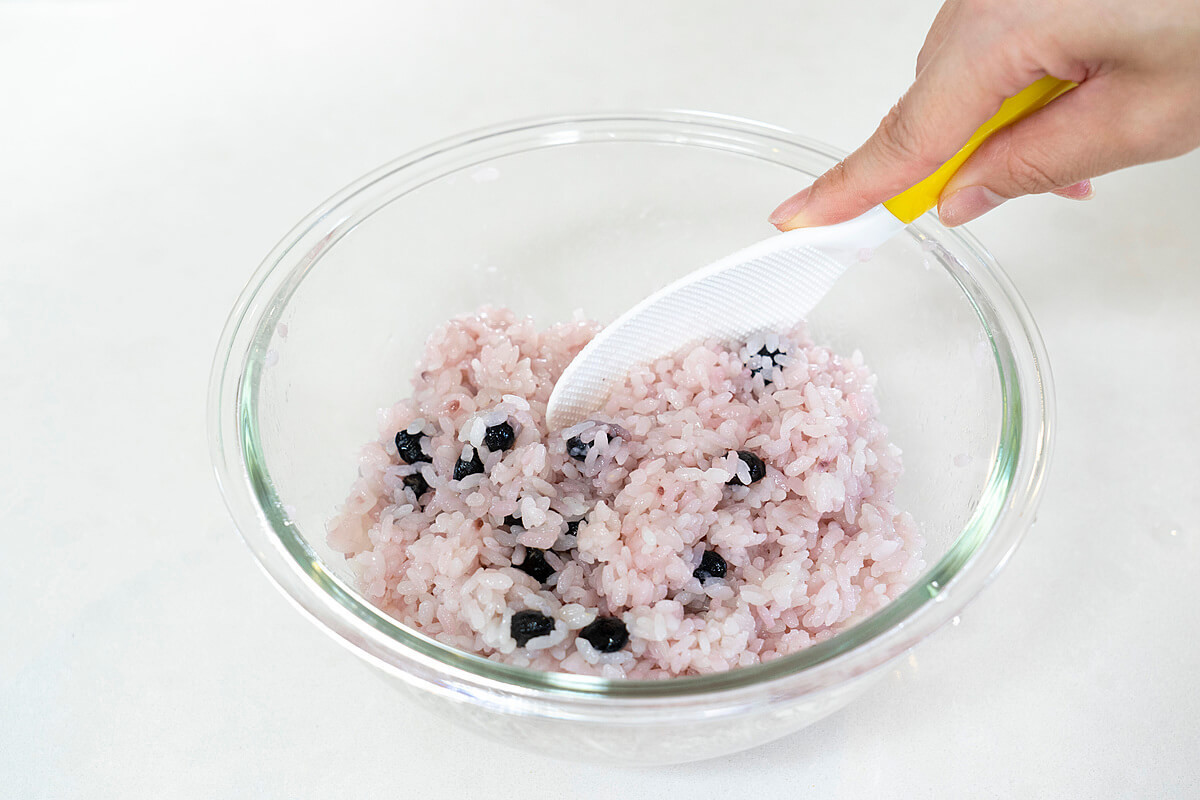⇒お酢のチカラで、ごはんがきれいな「ピンク色」に変身!