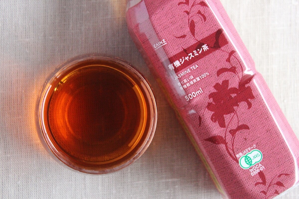 「有機栽培した緑茶に、華やかな香りのジャスミンの生花で丁寧に時間をかけてじっくりと薫香しているため、優しい自然のジャスミンの味・香りがお楽しみいただけます」とラベルにあります。