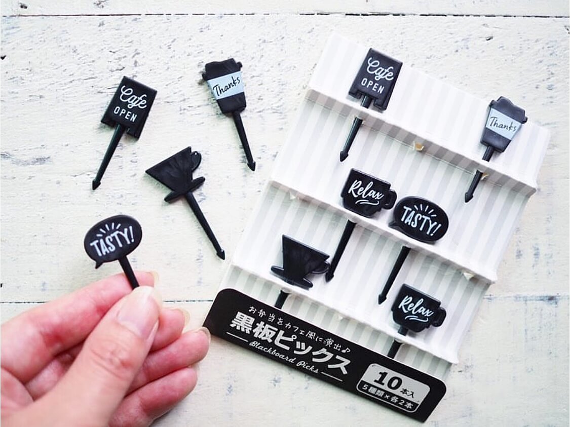 黒板のメニューボードやテイクアウトカップなど、カフェテイスト満載のピックが、5種類×各2本の合計10本入っています。