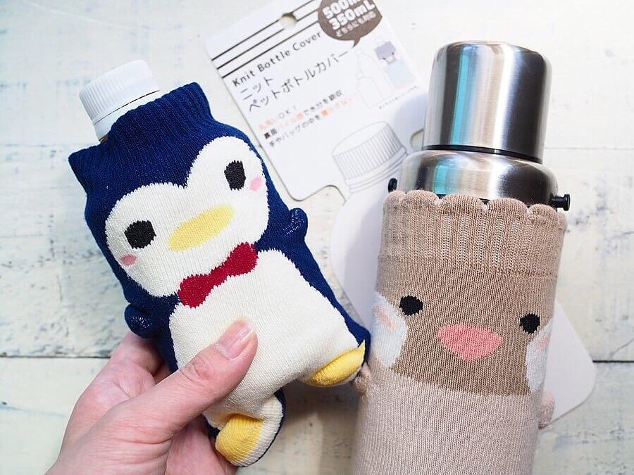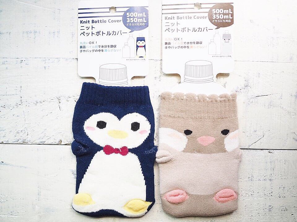 ▲ニットペットボトルカバー ペンギン柄/文鳥柄 各100円(税抜)