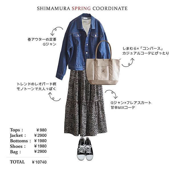 スカートはモノトーンの“レオパード柄”で、トレンドらしさをプラス。