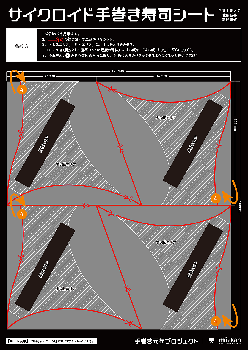 なんと、パーフェクトな形の手巻き寿司が作れるという、その名も「サイクロイド手巻き寿司シート」!