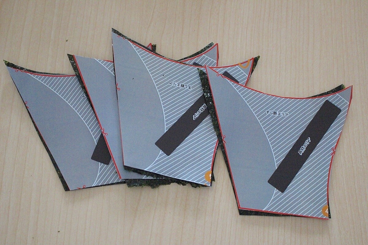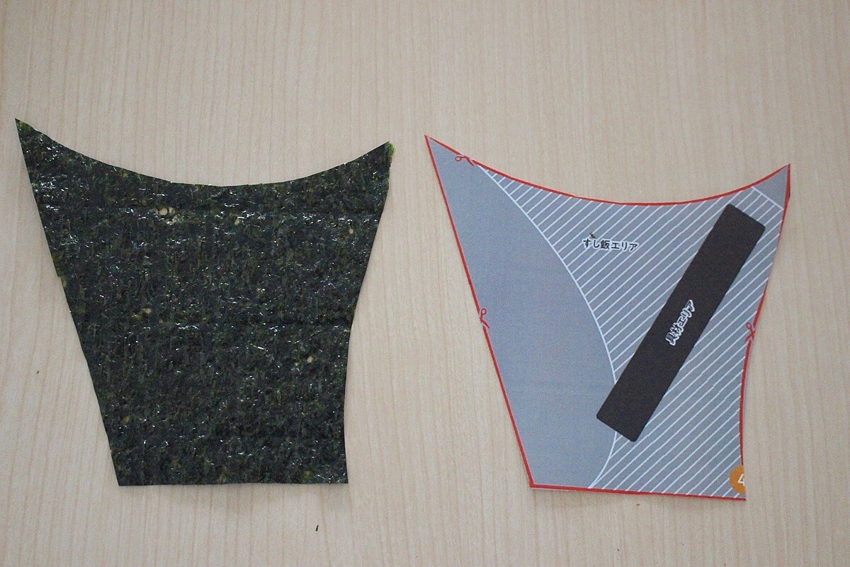 - 海苔を「サイクロイド手巻き寿司シート」の形にカットする。