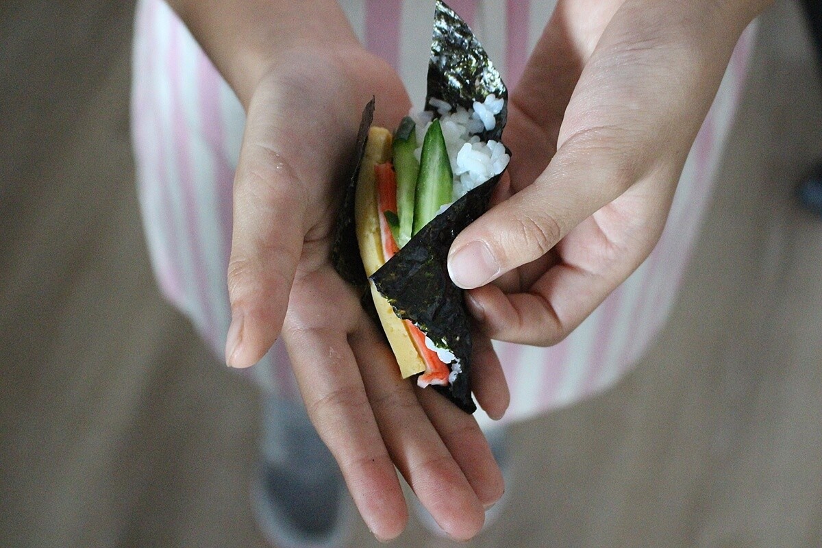 さっそく、このガイドシートを使って、実際に手巻き寿司を作ってみました!