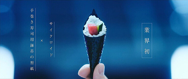 サイクロイドとは、円が回転しながら描く軌跡として生まれる曲線のこと。デザイン科学によって計算された形状の海苔に、すし飯と具材をクルクルと巻けば、美しい円すい形の手巻き寿司ができるということで、さっそくTwitterやメディアで話題になっています。