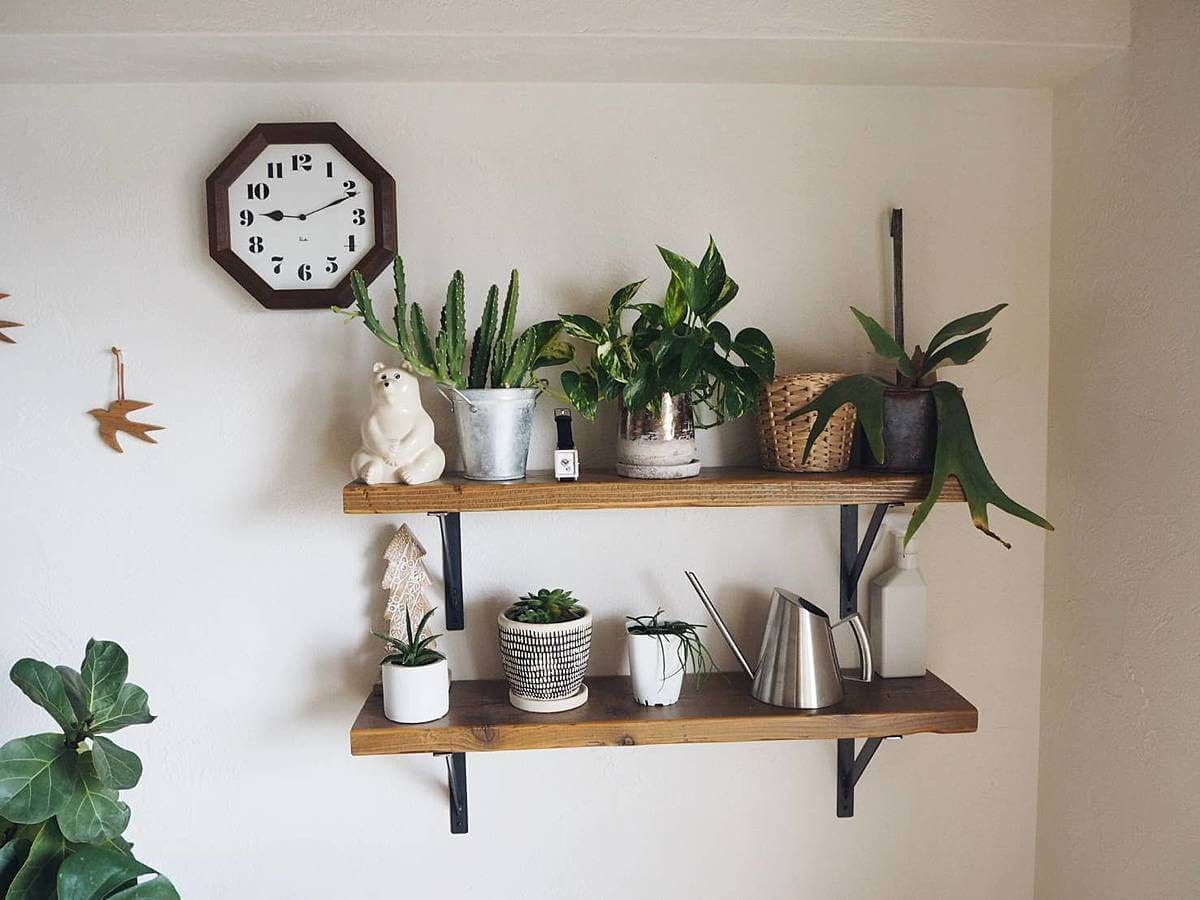 そしてもう1つ、観葉植物を置く場所でおすすめなのが壁面の棚。