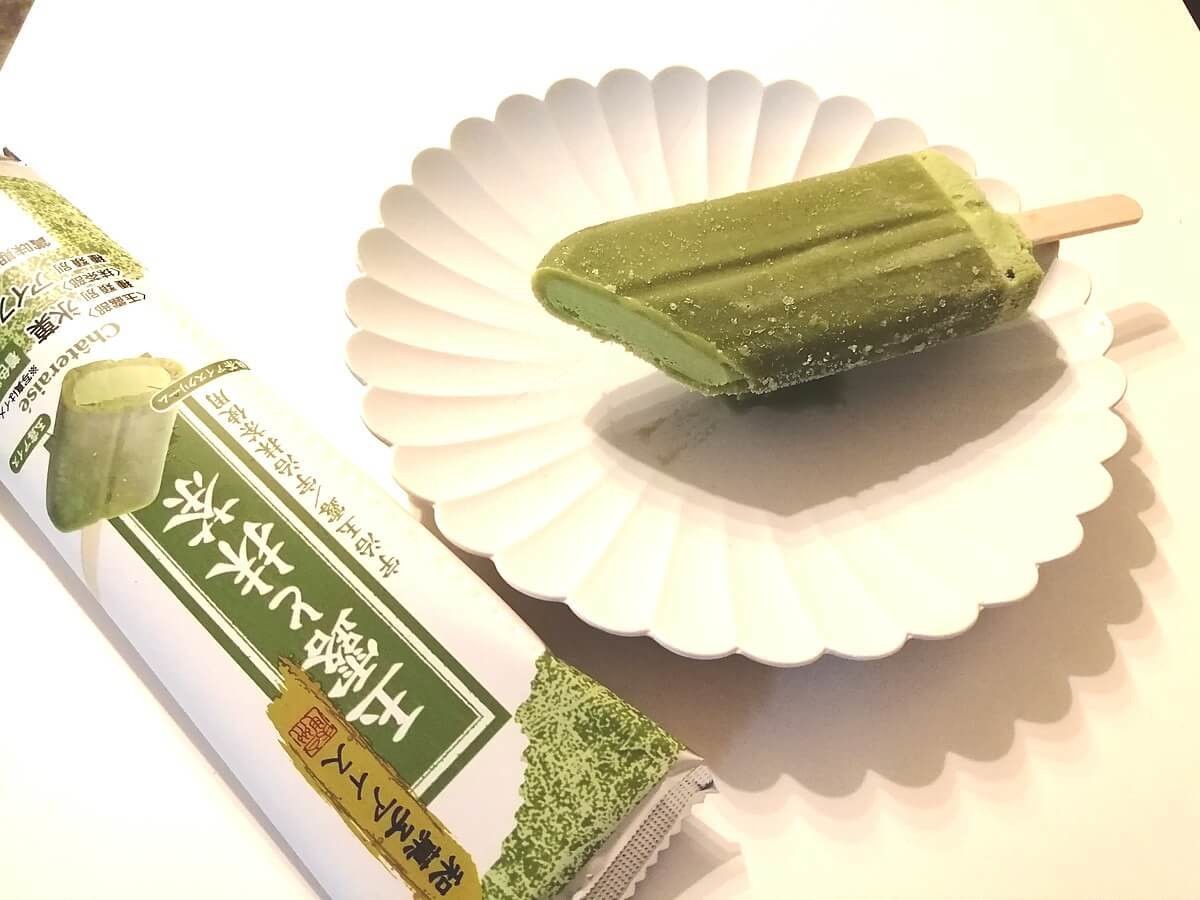 ただの抹茶バーと思いきや、なんと2層仕立ての贅沢アイス。外側はサラッとした口どけの抹茶アイスで、内側はクリーミーでコクのある抹茶アイスになっています。