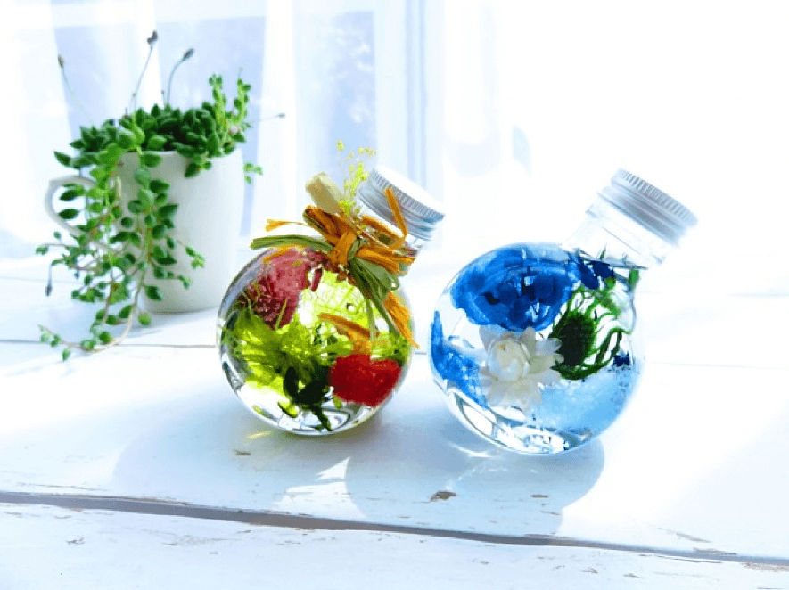 美しい花や緑をガラス瓶に詰めて飾るハーバリウム。市販されているものよりも、容器、そして中に入れる花やアクセサリーを選べるハンドメイドの方が何倍も楽しめます!