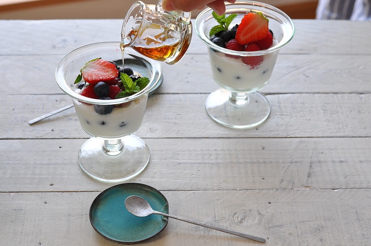 季節のフルーツを添えれば立派なスイーツになります。国産のブルーベリーやラズベリーは期間限定のお楽しみです