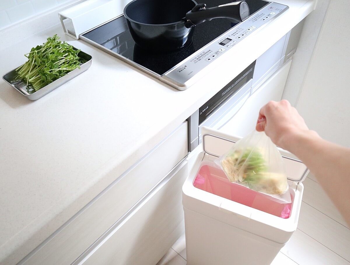 お料理中は手が塞がりがちですが、ワンタッチで蓋を開けられるのも魅力なんです。パッと開けてパッと閉めると、臭いが気になる食材を捨てても臭わないので快適です。