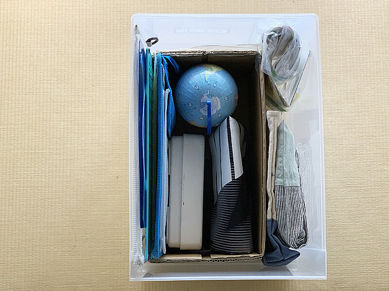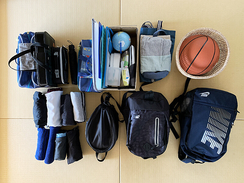 まず、学校から持ち帰る荷物を並べて、全体量を把握します。