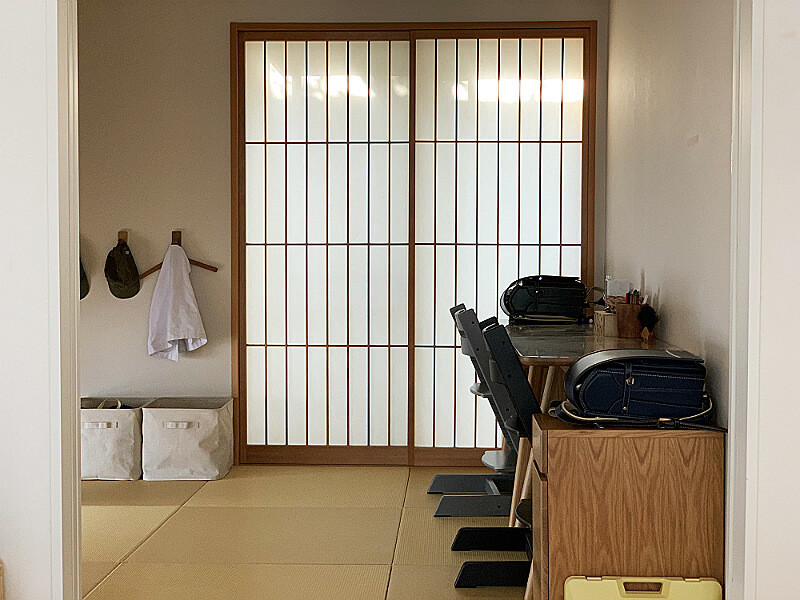 我が家はリビングに隣接している和室が、子どもの学習部屋。