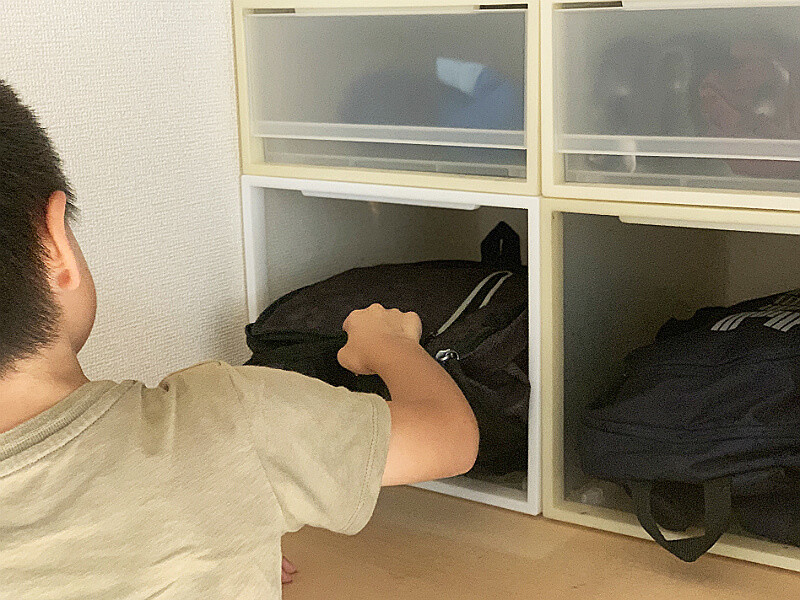 家具を新しく置くのは大掛かりですが、ちょっと収納用品を買い足して整理整頓できる環境を作れば、子どもも自分の荷物をきちんと管理・保管できるようになります。