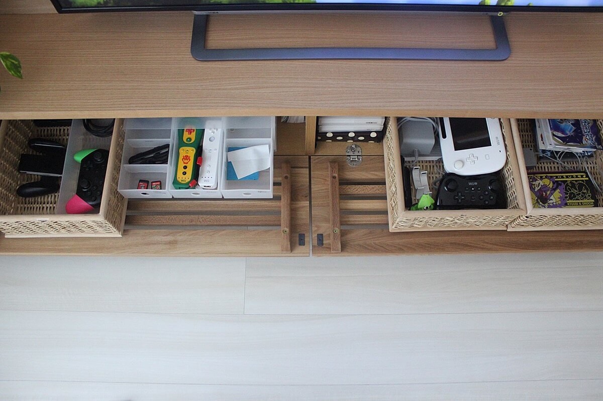 必然的にゲーム機を収納しているテレビ台の開閉頻度が増え、物の出し入れも増えました。